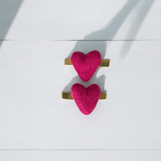 Pink Felt Heart Hair Clips