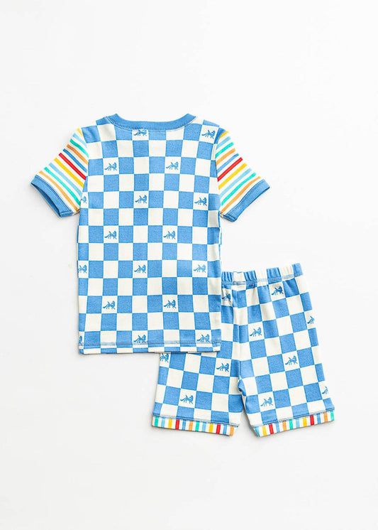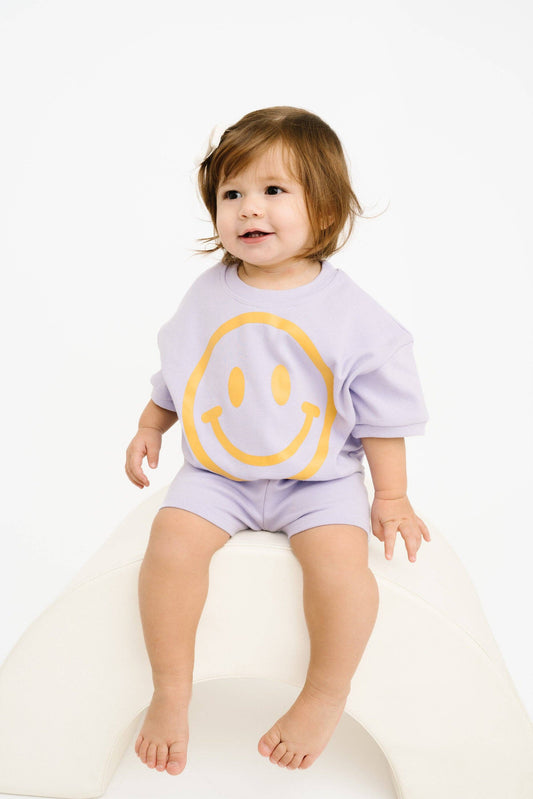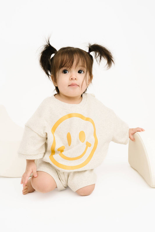 Short Sleeve Bubble Romper | Checkered Smiley Latte