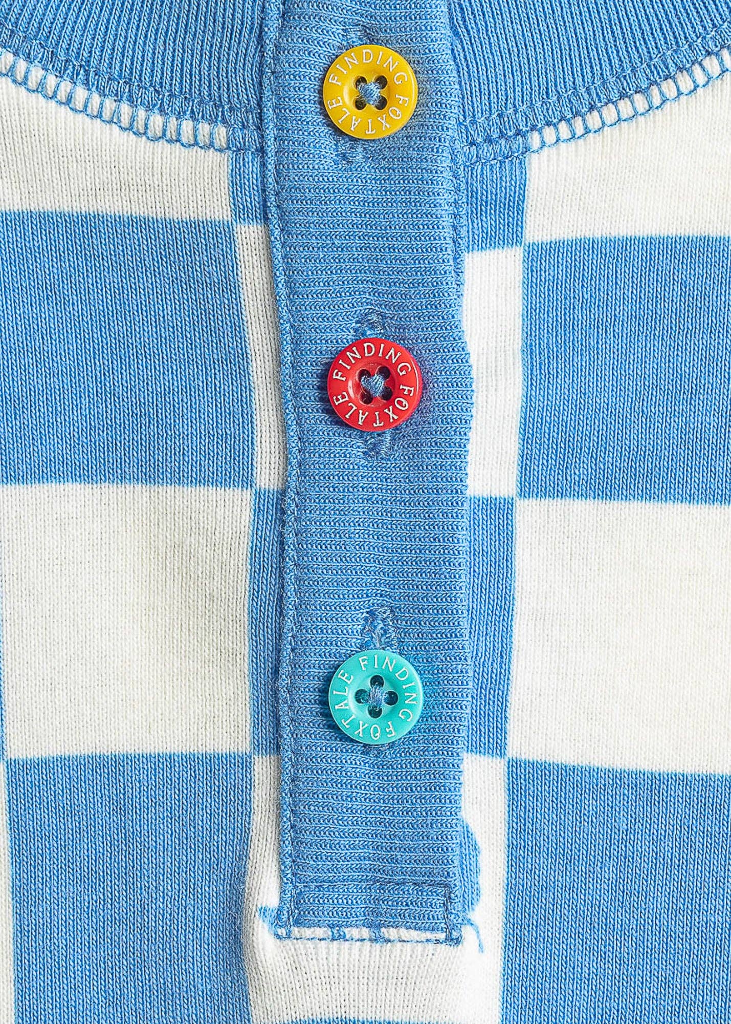 It’s all fun and games until it’s bedtime...then it’s time to settle down in these Checkmate PJs! A cool blue checkered print (complete with our favorite Fox) and a mini rainbow stripe to create the perfect balance of color and fun in this unisex short-sleeved short set. The soft cotton ribbed fabric is sure to make these cozy and comfy all summer long.